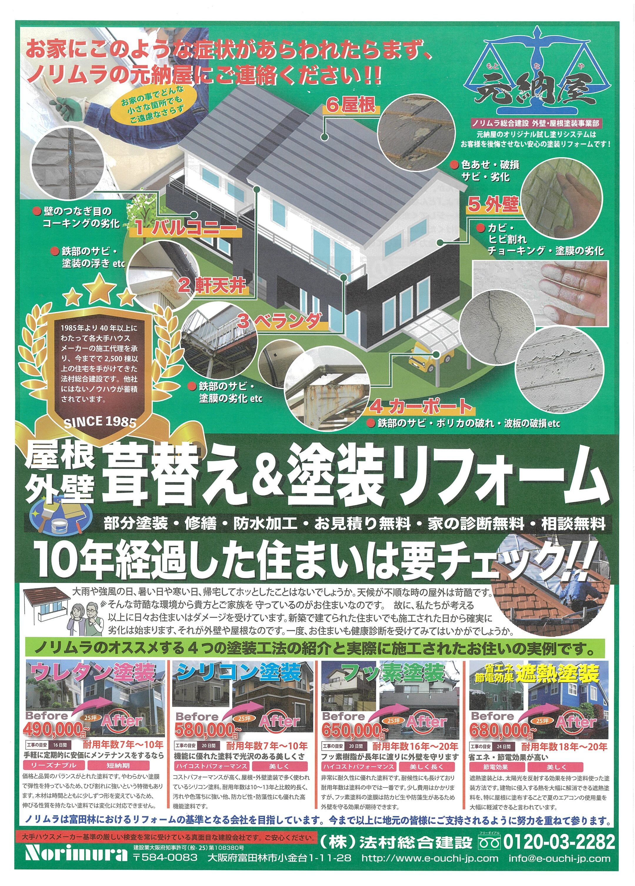 富田林市・河内長野市・ 堺市・大阪狭山市・南河内郡・羽曳野市・ 和泉市、他泉南エリア、橋本市・千早赤阪村・藤井寺市・柏原市・八尾市・香芝市・大阪市・松原市等 その他の近畿エリアも多数施工実績があります。 ご遠慮なくご相談ください!!